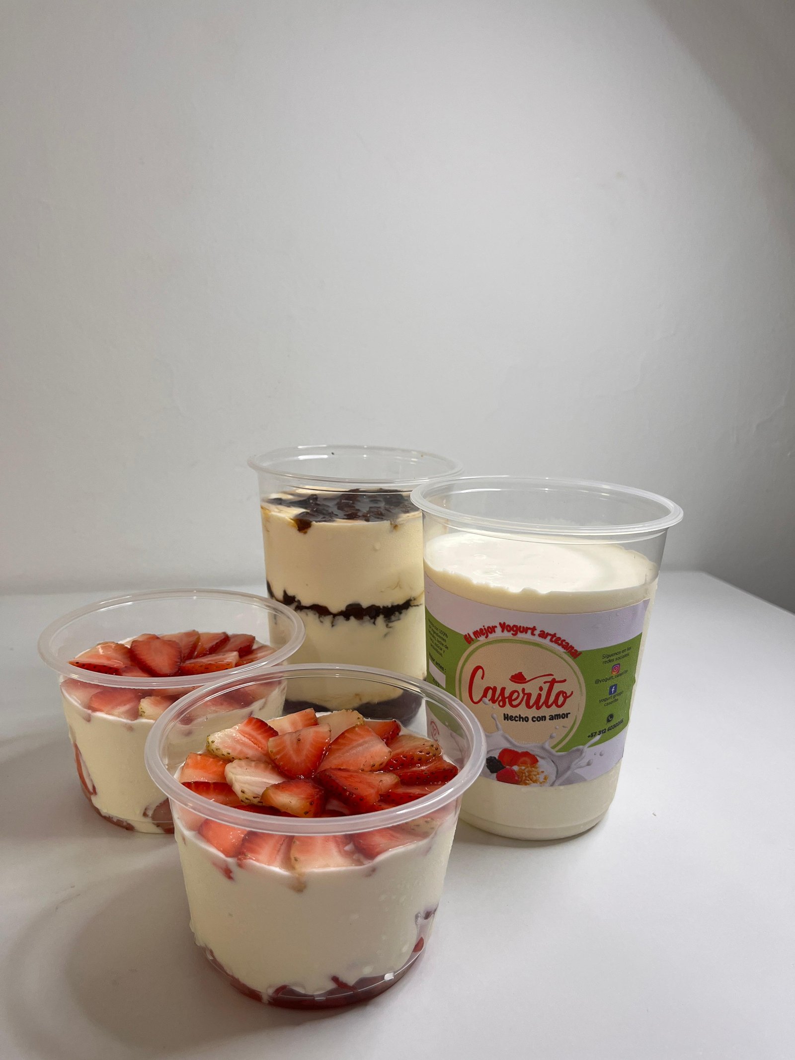¡Descubre el auténtico sabor de Caserito! Yogurt Griego con fruta fresca o Yogurt Kumis, ambos elaborados con ingredientes naturales y bajo pedido para garantizar máxima frescura. ¡No te pierdas esta experiencia casera única! 🥛🍓